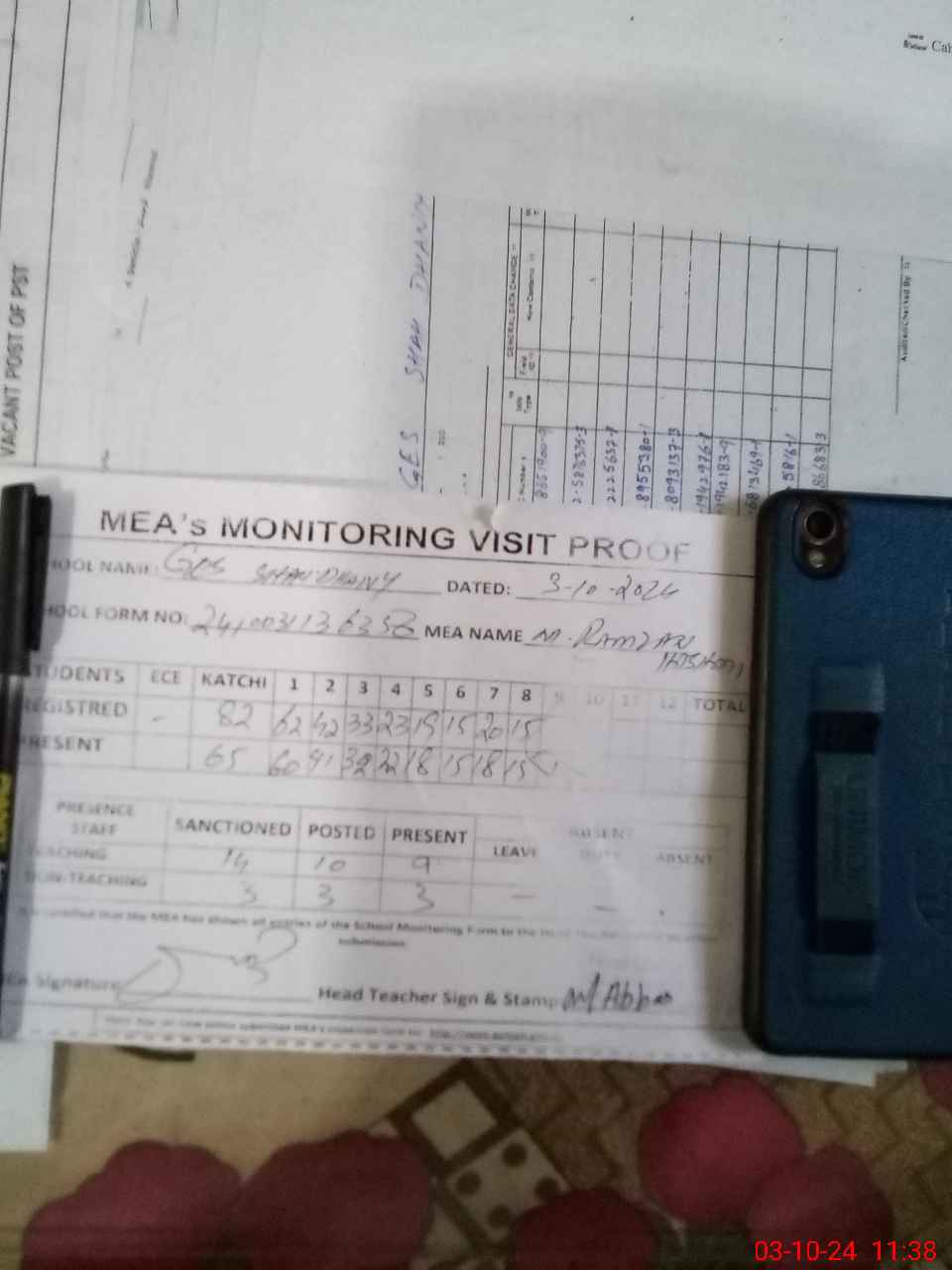 | Attendance Register | Head Teacher | MEA with School | Visit Proof |