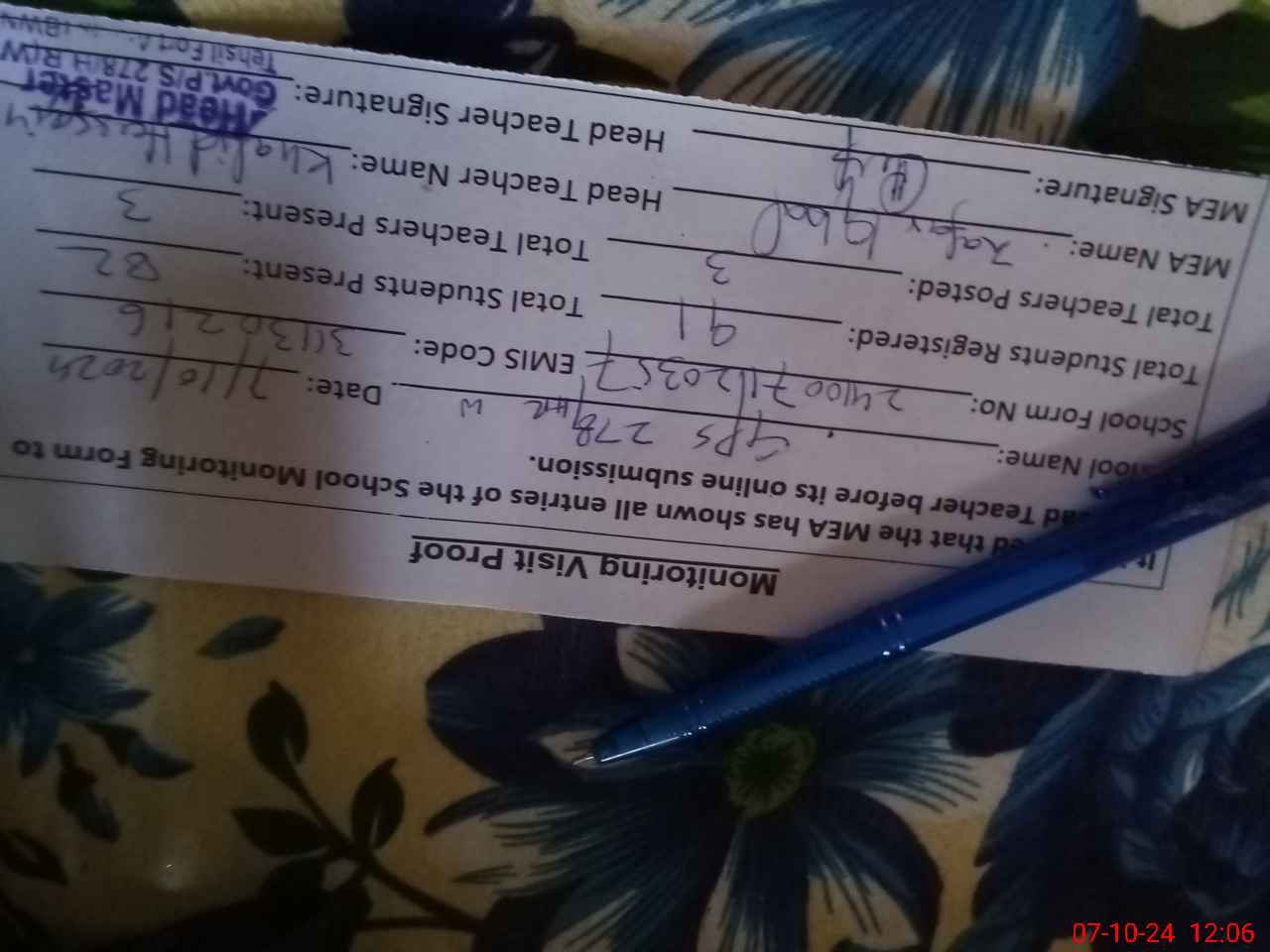 | Certified that this School was Inspected by the Undersigned MEA/DMO Today and the Information Stated Above is as Per Record. | |||||