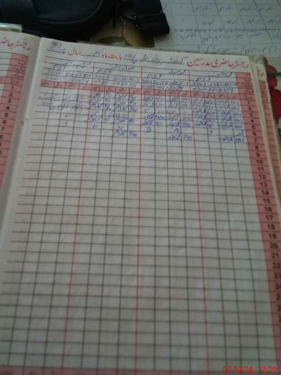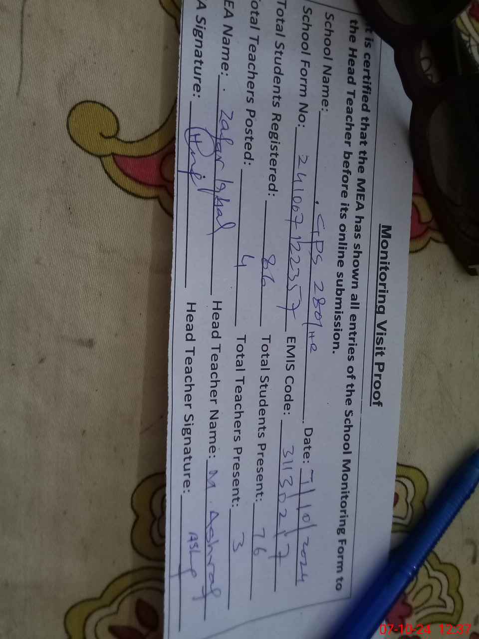 | Name: M.**** Designation: (School Headmaster's/Headmistress's) PTC/JV Phone/Cell Number: 03**** |