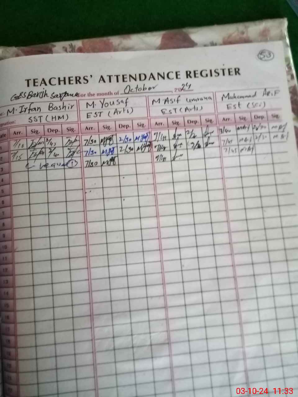 | 36**** | Mu**** Ir**** Ba**** | SST | Regular | 0 | 0 | 0 | 0 | 0 | 0 | 0 | 0 | 0 | Absent (Un-Authorized) |