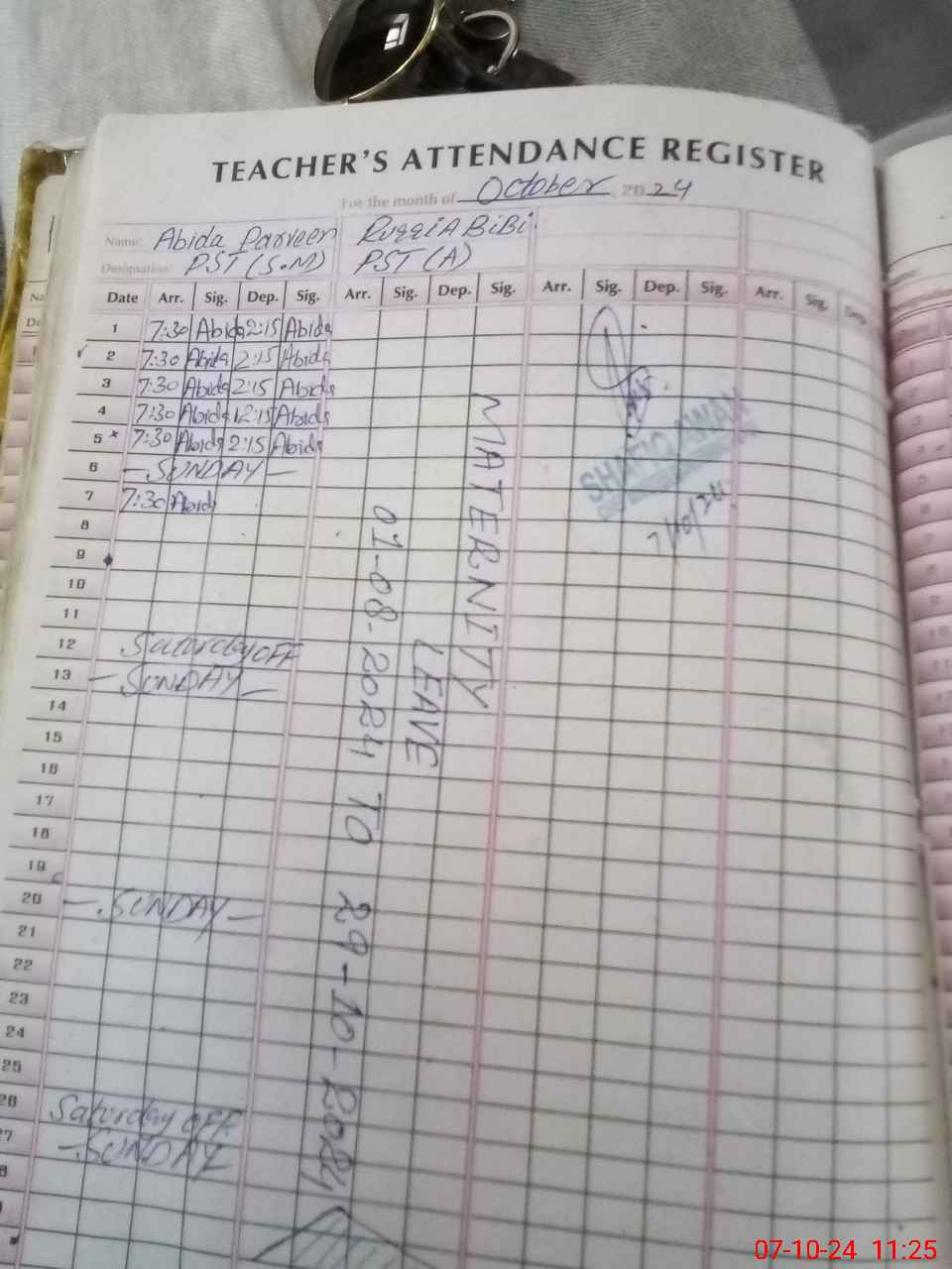 | Leave | Duty | Absent | Maternity | Medical | Ex- Pak |