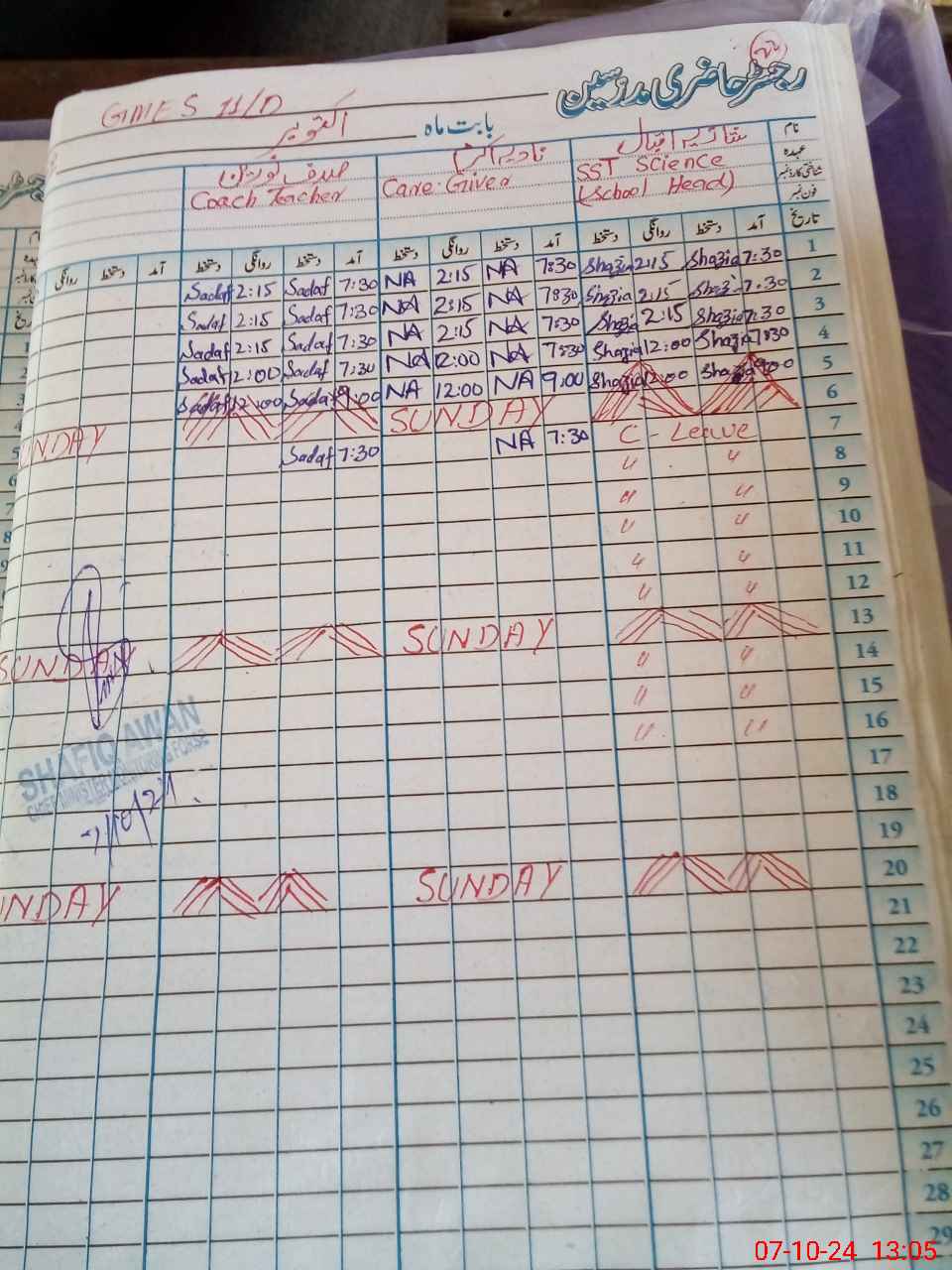 | CNIC | Full Name | Designation | R/C | Absence During Last Calender Month |