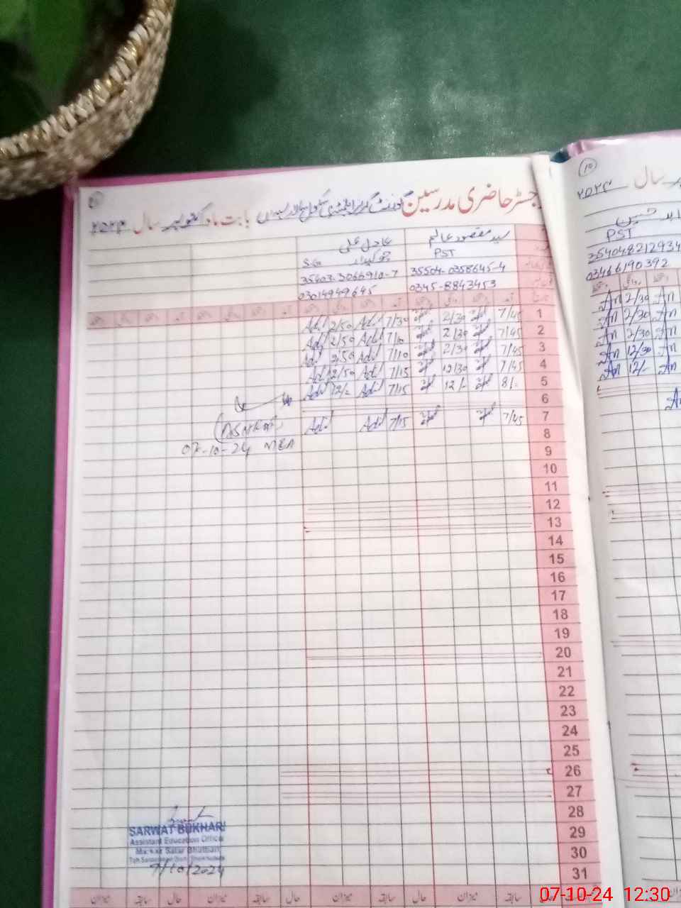 | Name: SO**** SH**** Designation: (School Headmaster's/Headmistress's) SESE Phone/Cell Number: 03**** |