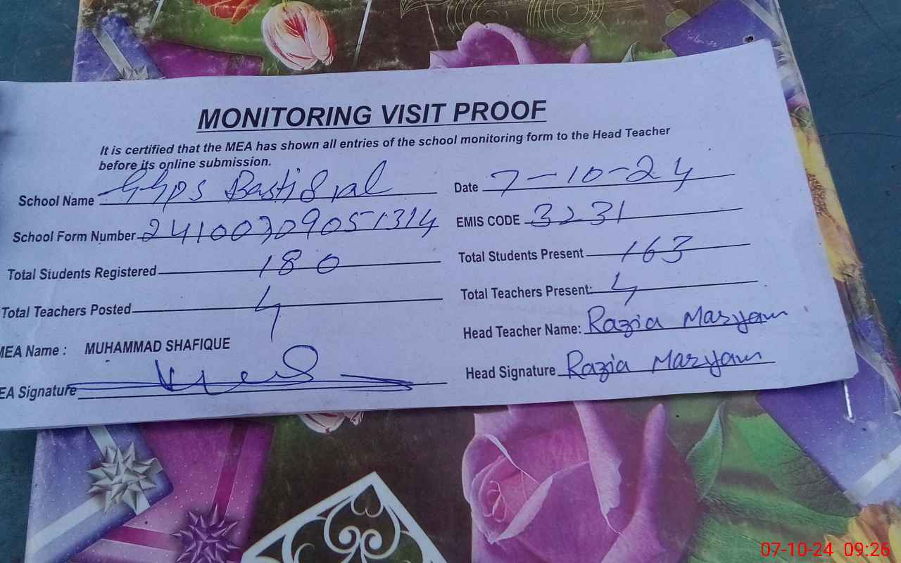 | EMIS Code: 32310237 | Name of School: GGPS BASTI SIAL | |||