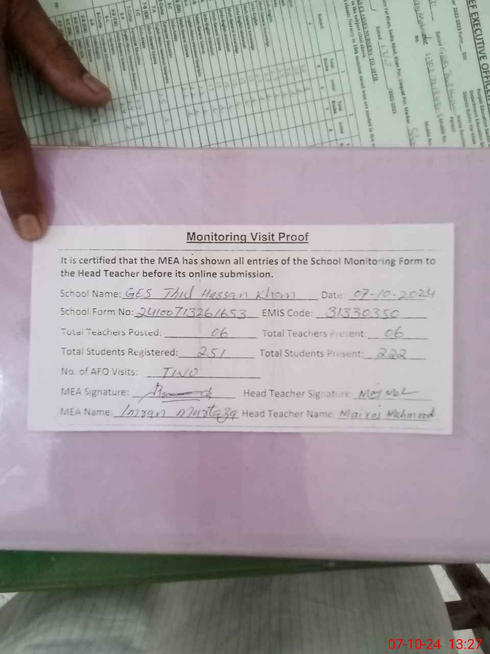 | EMIS Code: 31330350 | Name of School: GES THUL HASSAN KHAN | |||