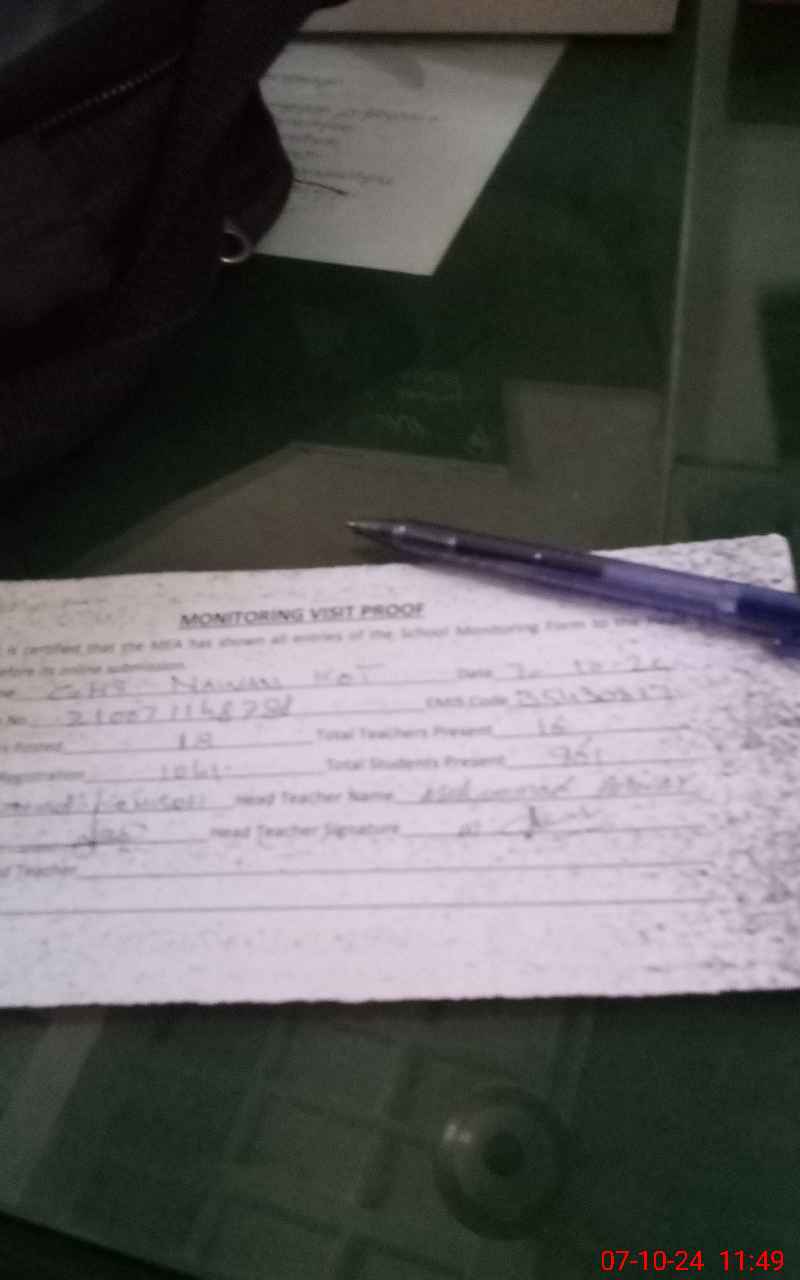 | Certified that this School was Inspected by the Undersigned MEA/DMO Today and the Information Stated Above is as Per Record. | |||||