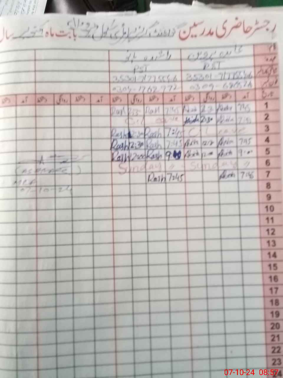 | CNIC | Full Name | Designation | R/C | Absence During Last Calender Month |