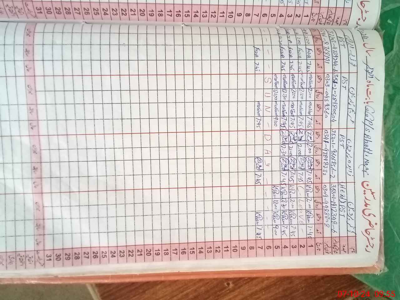 | CNIC | Full Name | Designation | R/C | Absence During Last Calender Month |