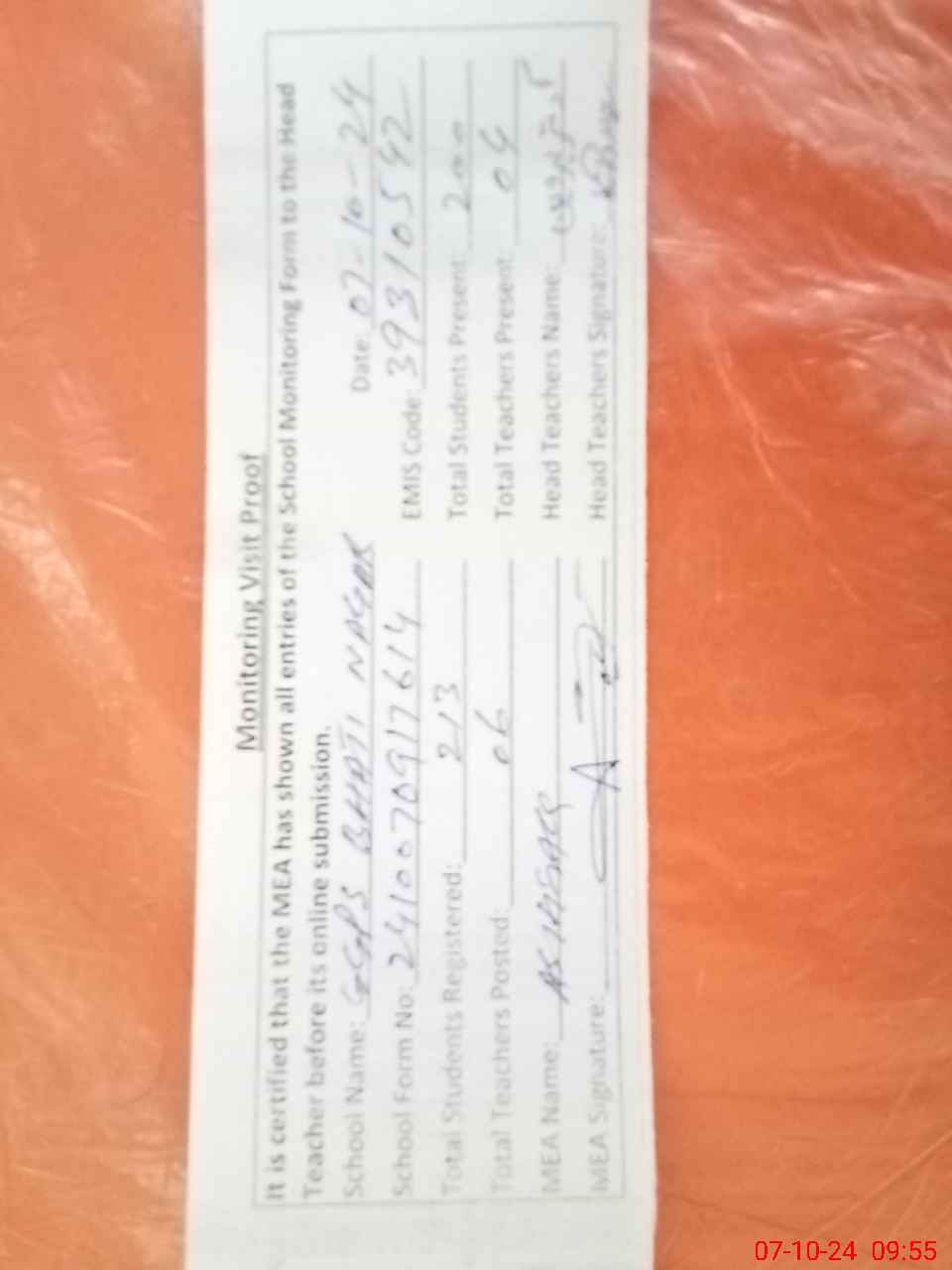 | Attendance Register | Head Teacher | MEA with School | Visit Proof |