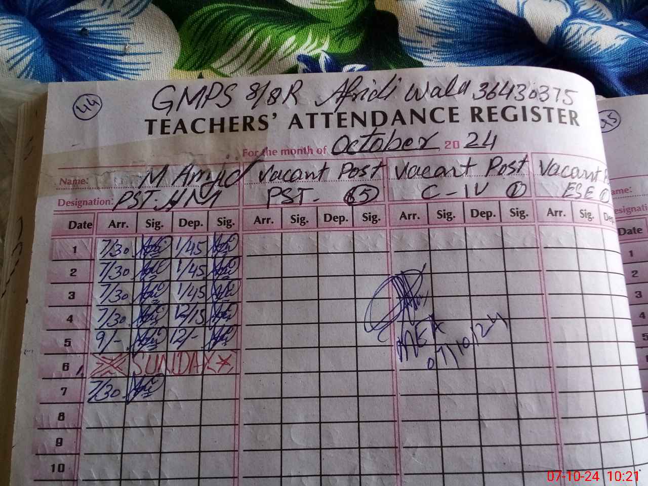 | Name: Ba**** Ra**** Designation: (School Headmaster's/Headmistress's) EST Phone/Cell Number: 03**** |