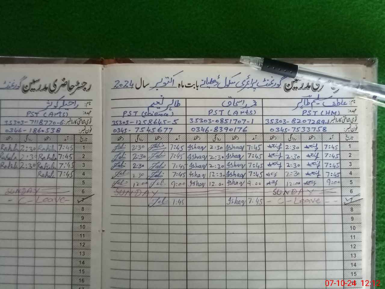 | Name: At**** Sa**** Ta**** Designation: (School Headmaster's/Headmistress's) PTC/JV Phone/Cell Number: 03**** |