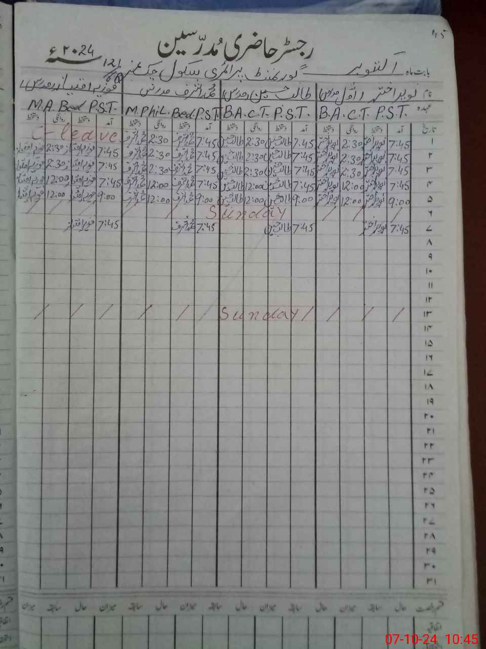 | CNIC | Full Name | Designation | R/C | Absence During Last Calender Month |
