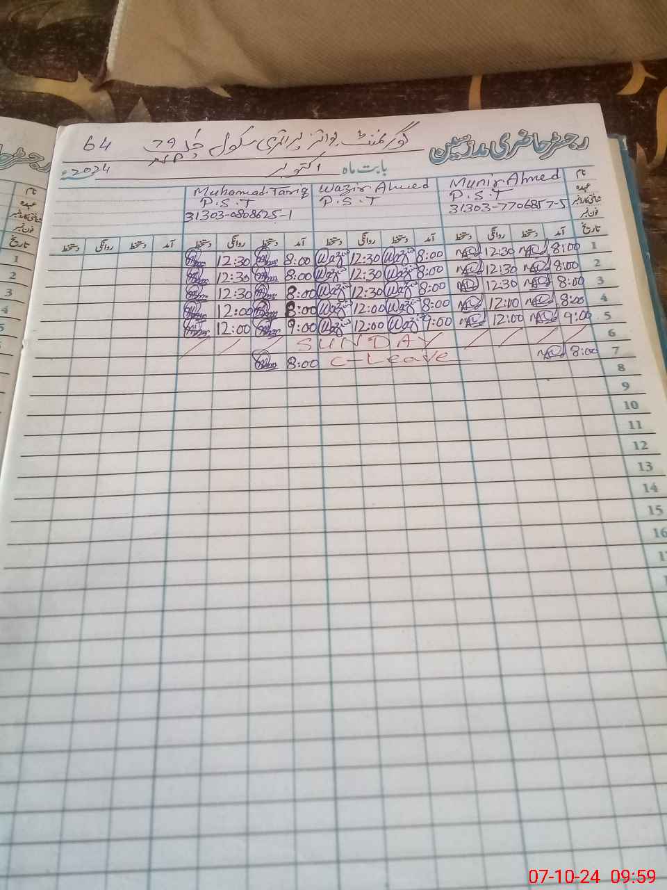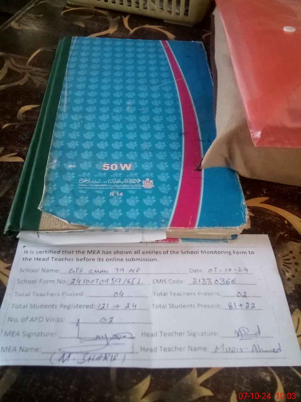 | Name: MU**** AH**** Designation: (School Headmaster's/Headmistress's) PST Phone/Cell Number: 03**** |