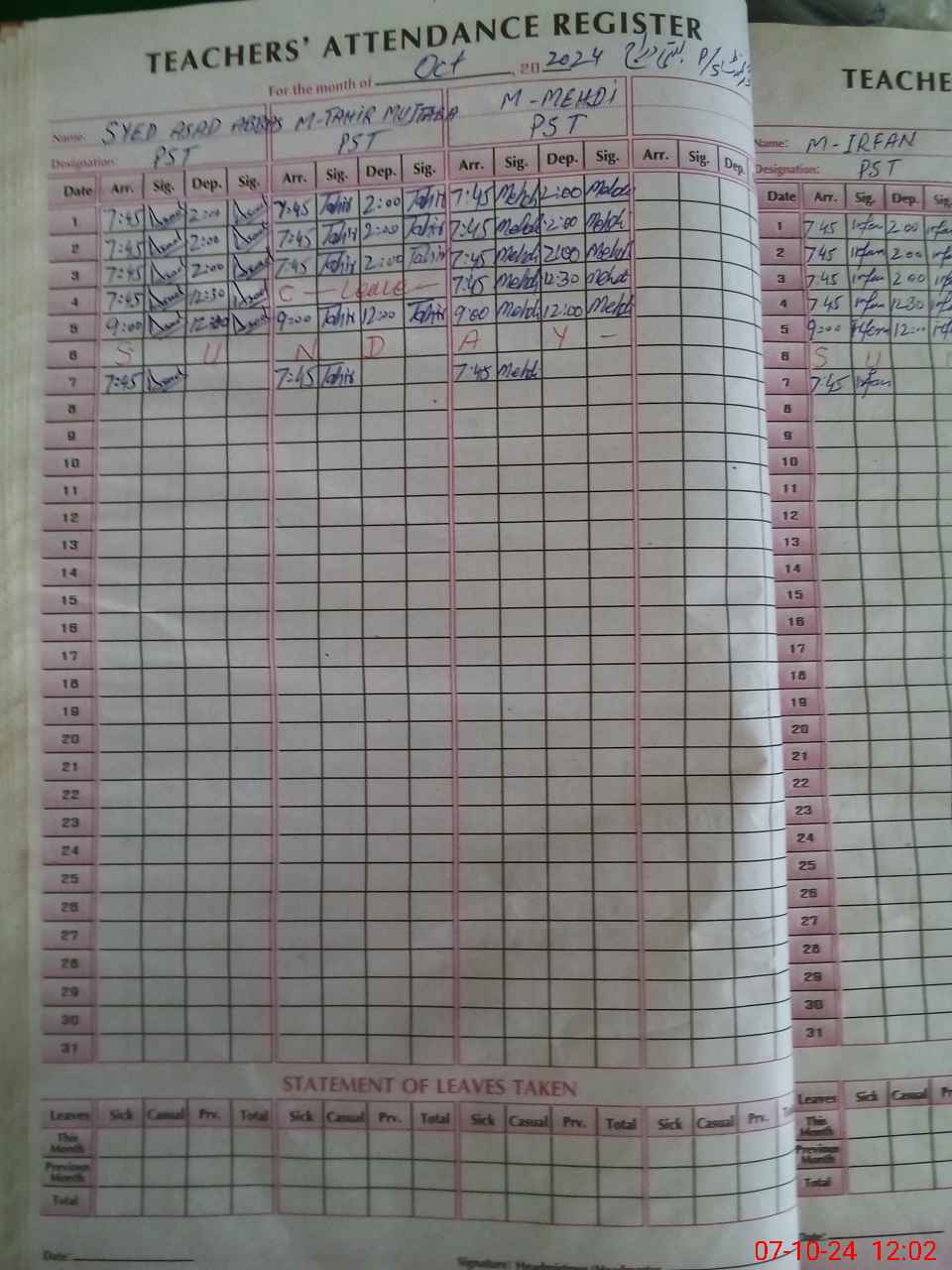 | Name: Mu**** Ir**** Designation: (School Headmaster's/Headmistress's) PST Phone/Cell Number: 03**** |