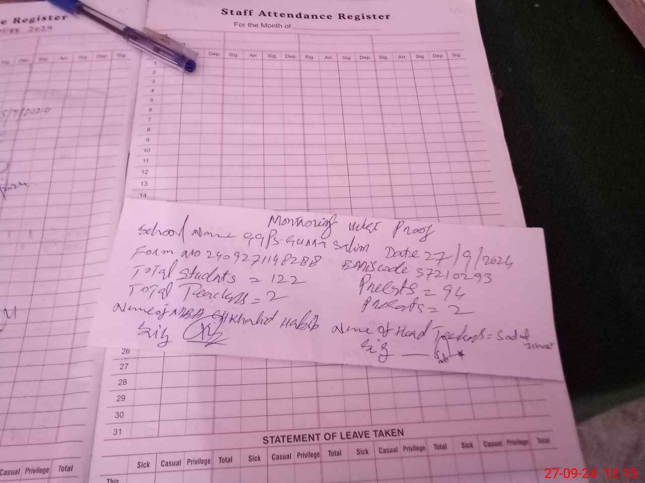 | Monitoring Date: 27-09-2024 | Start Time: 27-09-2024 11:47 AM | End Time: 27-09-2024 12:15 PM | Name of MEA: Kh**** ha**** | |