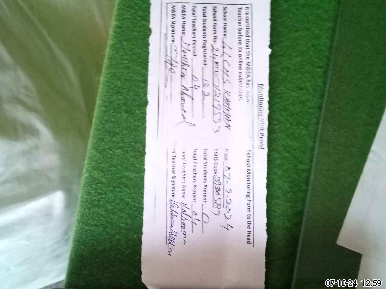 | Monitoring Date: 07-10-2024 | Start Time: 07-10-2024 12:19 PM | End Time: 07-10-2024 01:02 PM | Name of MEA: MU**** AH**** (R**** | |
