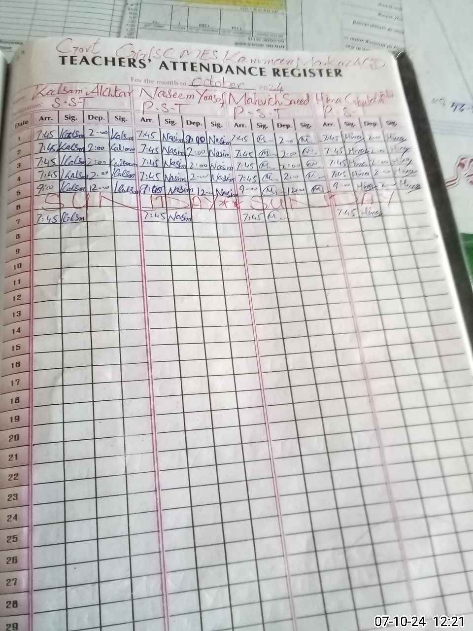 | CNIC | Full Name | Designation | R/C | Absence During Last Calender Month |