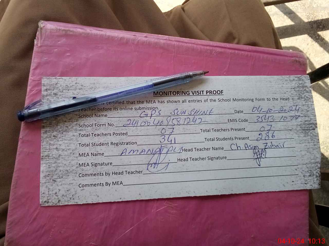 | EMIS Code: 35431077 | Name of School: GPS SUNSHINE | |||
