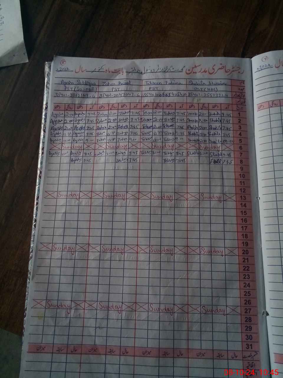| CNIC | Full Name | Designation | R/C | Absence During Last Calender Month |