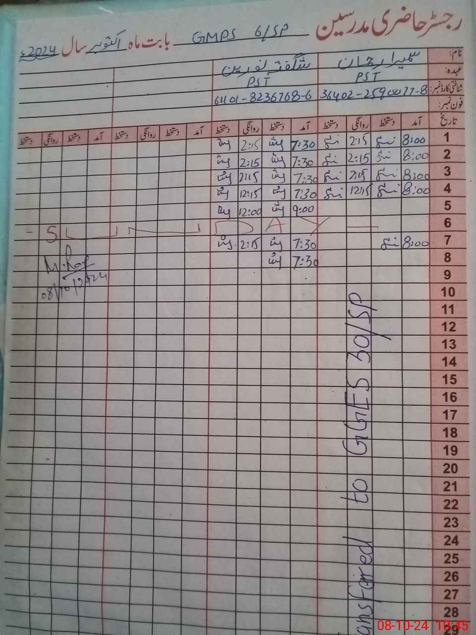 | Name: SH**** NO**** Designation: (School Headmaster's/Headmistress's) PST Phone/Cell Number: 03**** |