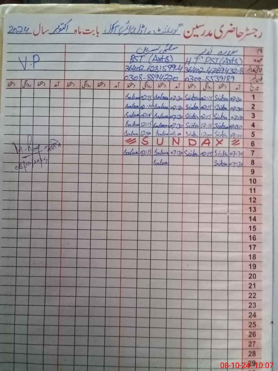 | Name: Si**** Na**** Designation: (School Headmaster's/Headmistress's) PST Phone/Cell Number: 03**** |