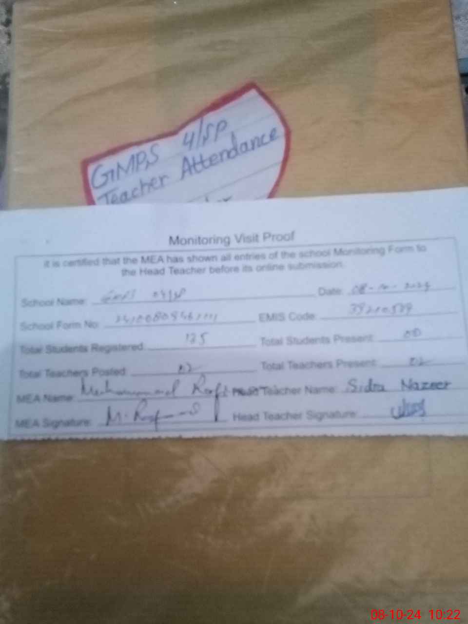 | EMIS Code: 39210543 | Name of School: GMPS CHAK NO. 4/SP | |||