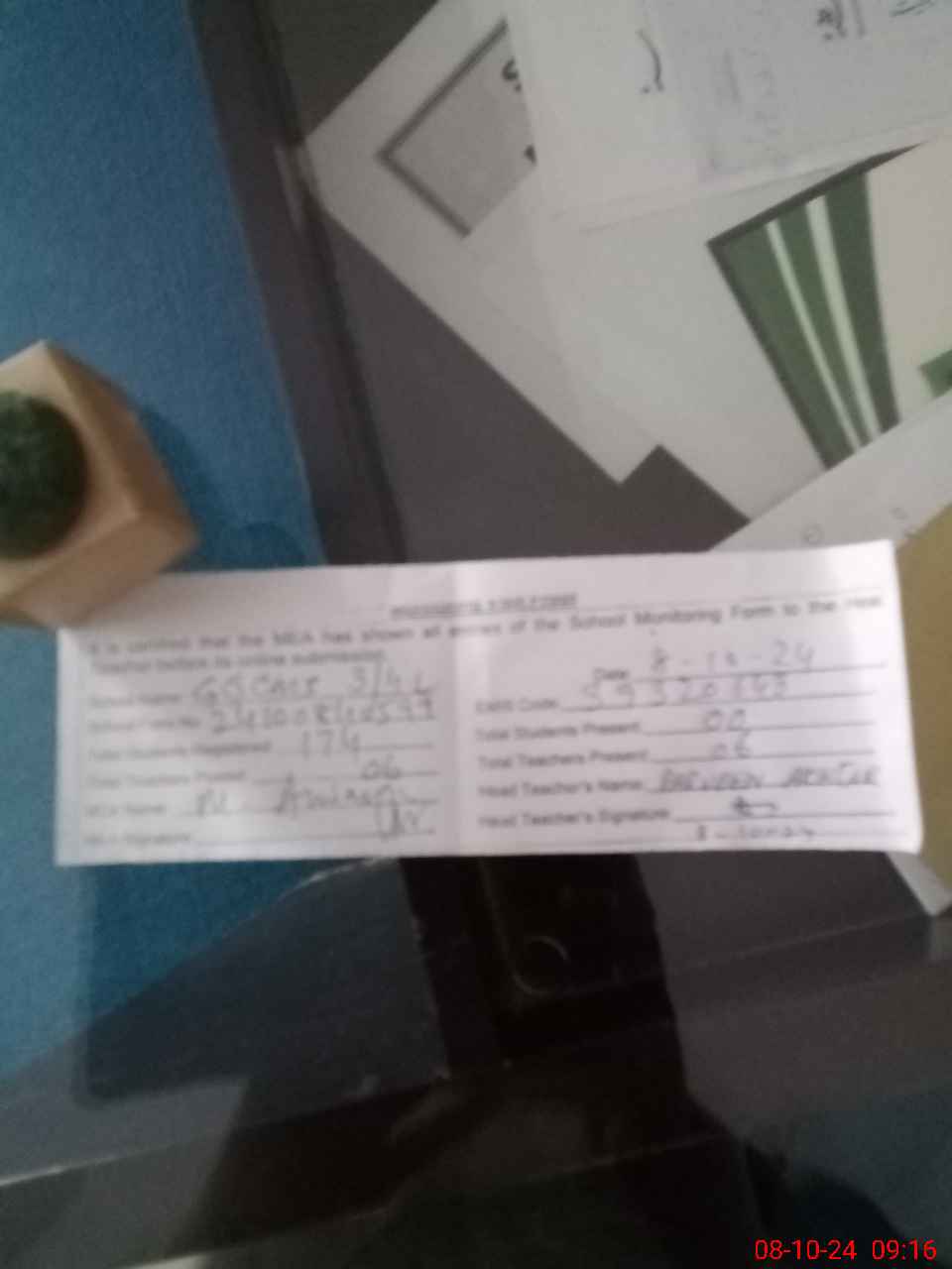 | Attendance Register | Head Teacher | MEA with School | Visit Proof |