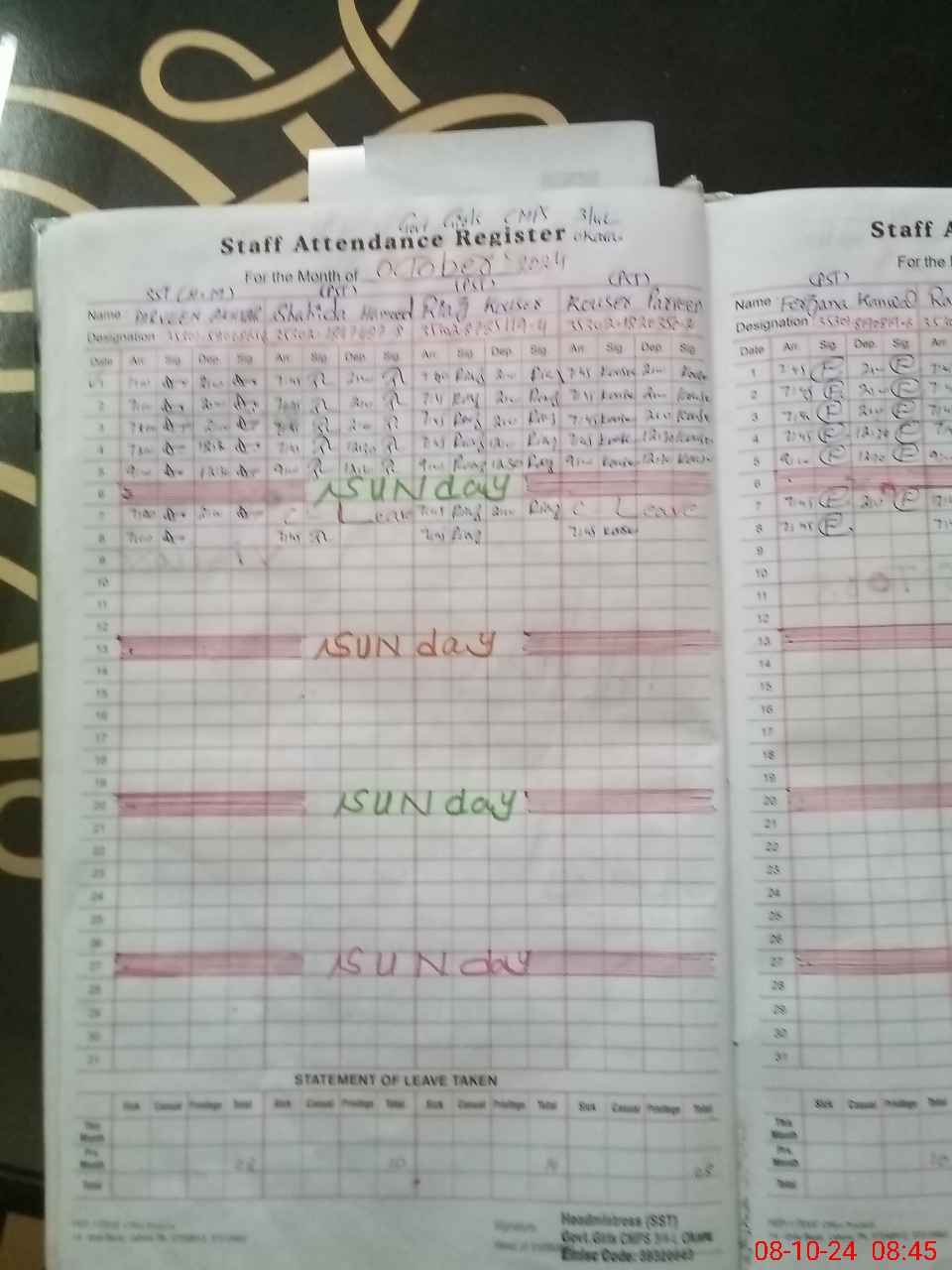 | Leave | Duty | Absent | Maternity | Medical | Ex- Pak |