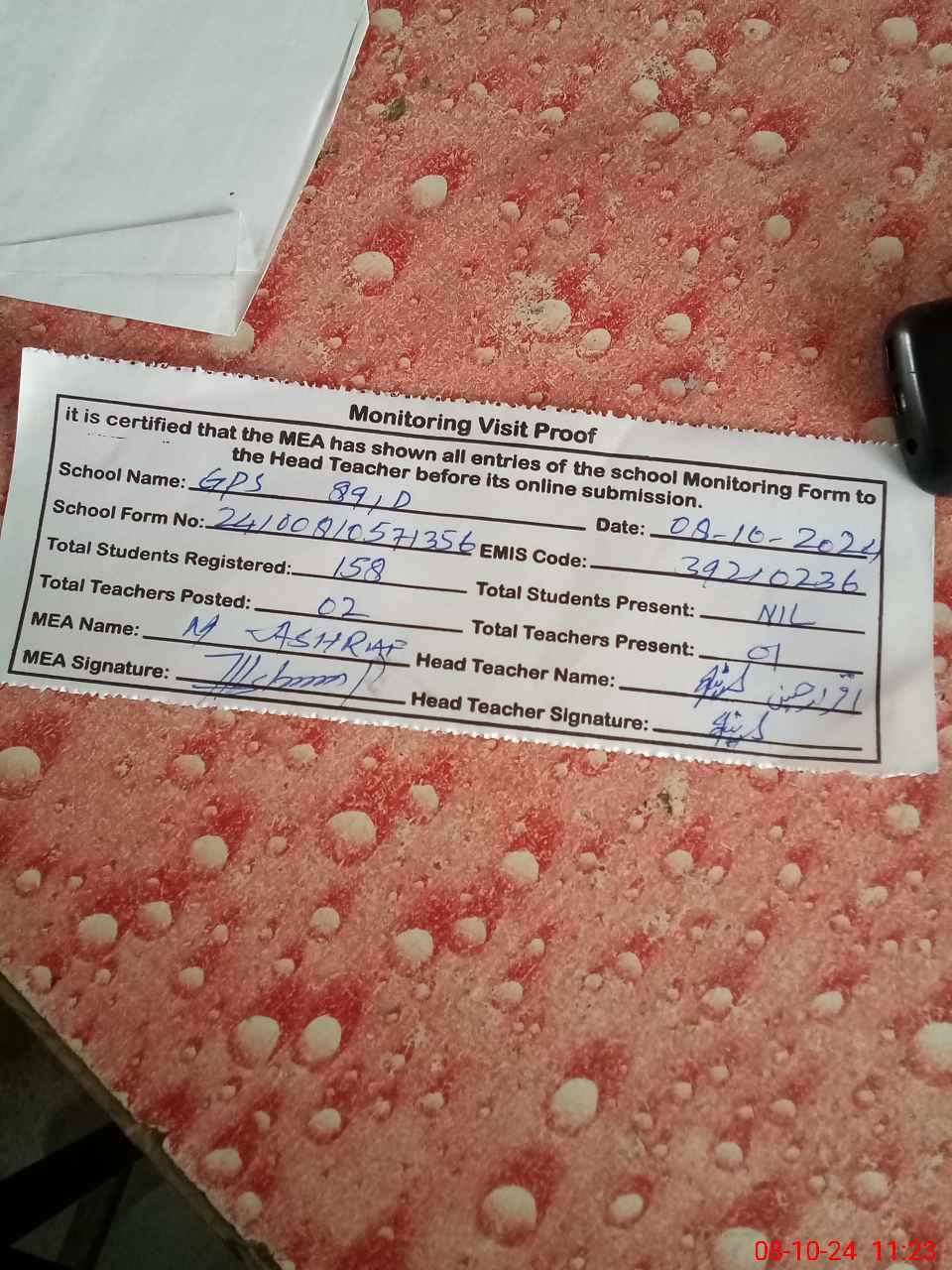 | EMIS Code: 39210236 | Name of School: GPS CHAK NO. 89 /D | |||
