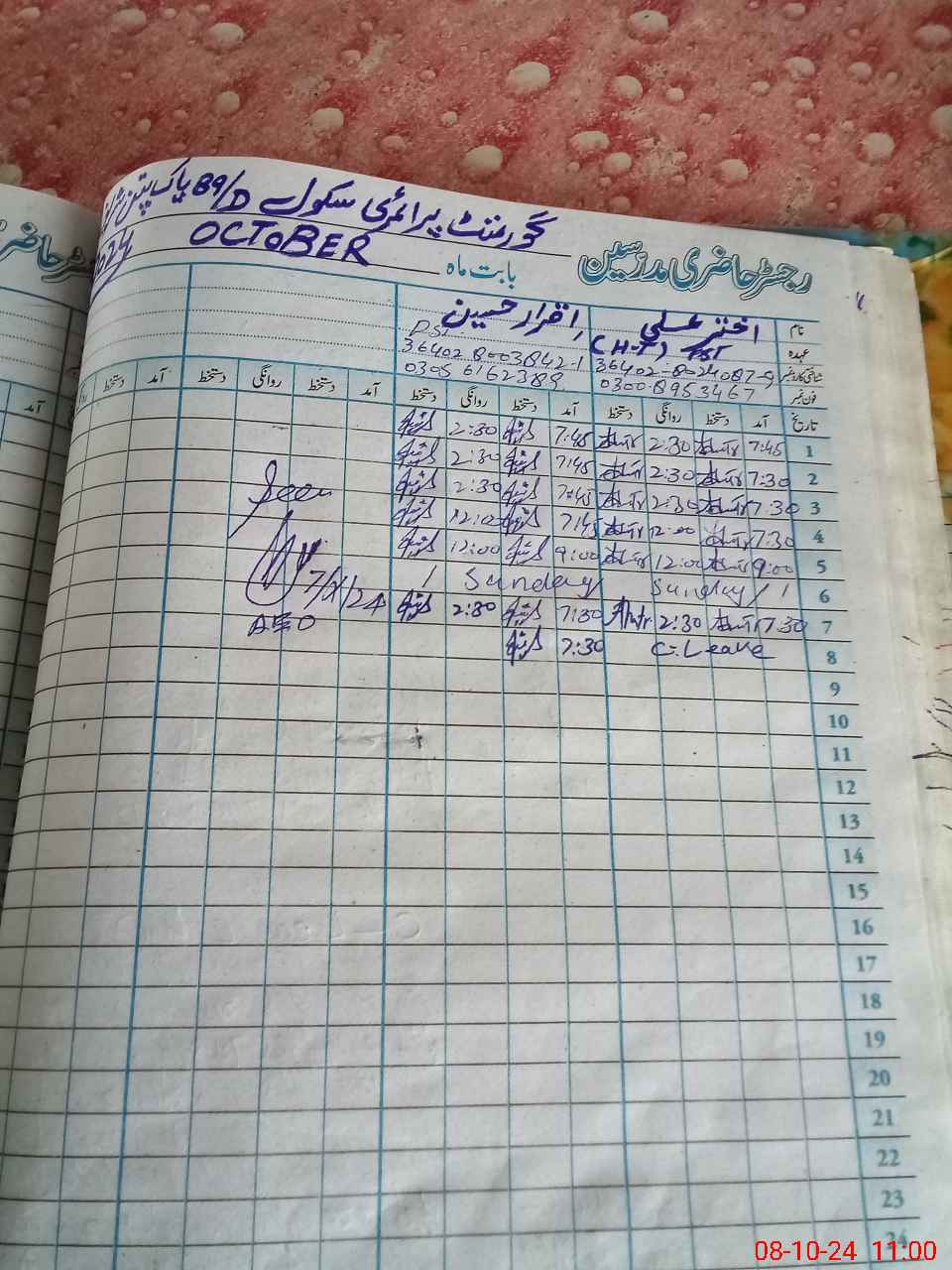 | Name: AK**** AL**** Designation: (School Headmaster's/Headmistress's) PST Phone/Cell Number: 03**** |