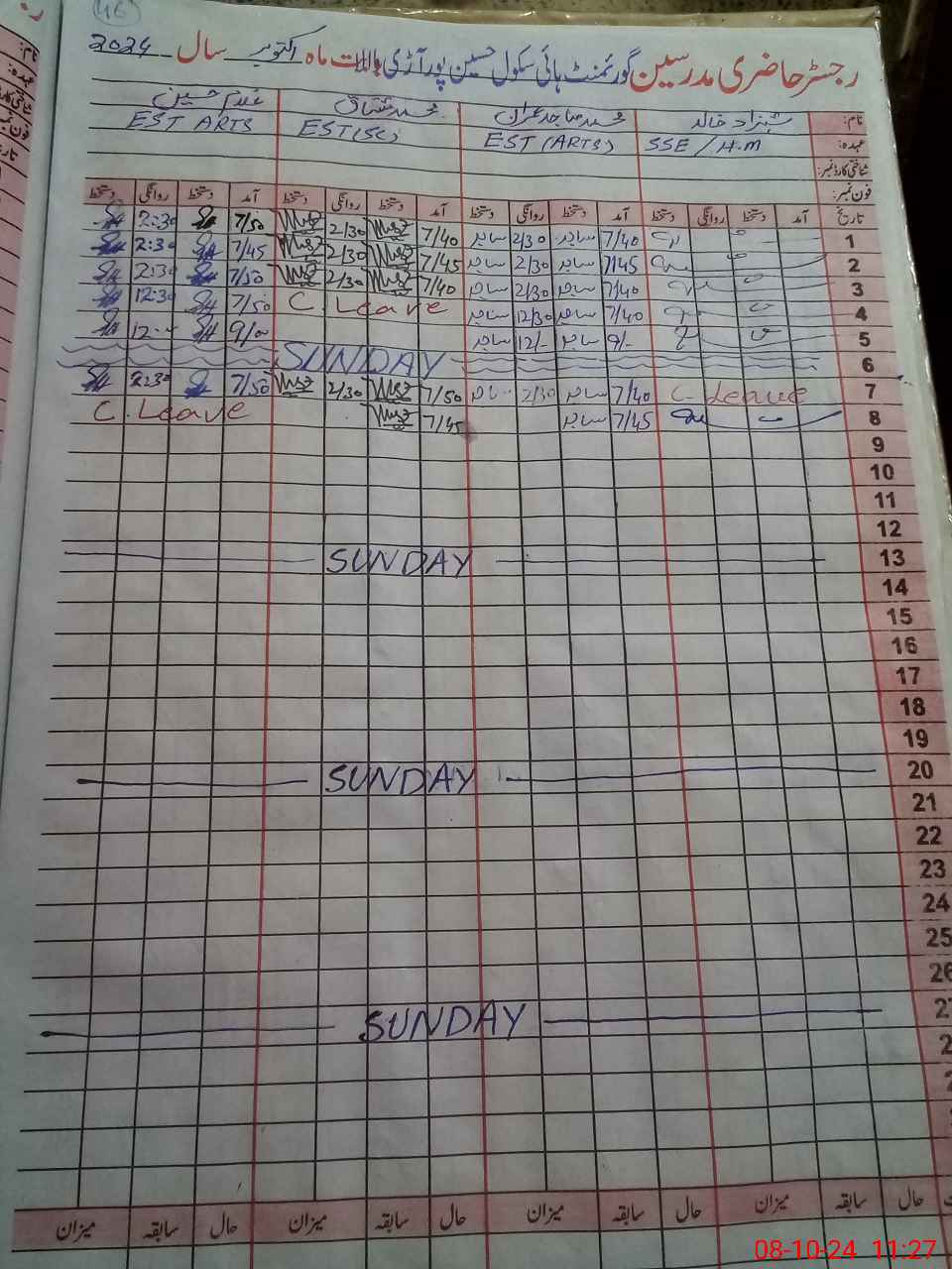 | 36**** | Gh**** Hu**** | Regular | 0 | 0 | 0 | 0 | 0 | 0 | 0 | 0 | 0 | Casual | |