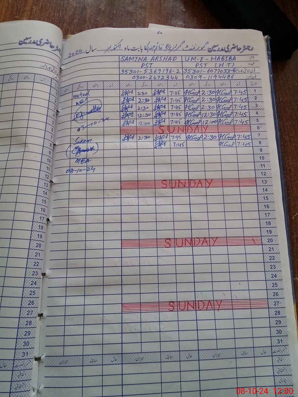 | Name: Um**** Ha**** Designation: (School Headmaster's/Headmistress's) PST Phone/Cell Number: 03**** |