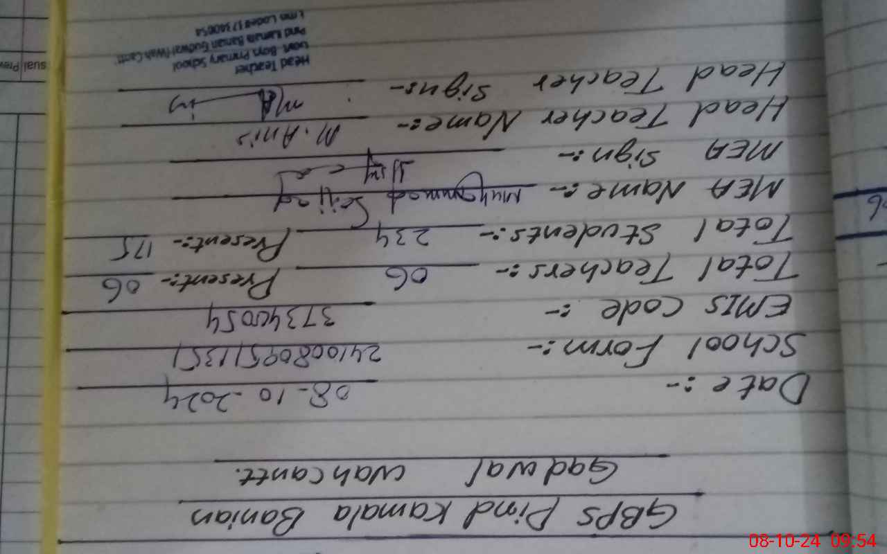 | EMIS Code: 37340054 | Name of School: GPS PIND KAMALA BANIAN | |||