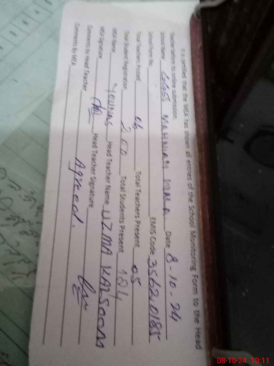 | Certified that this School was Inspected by the Undersigned MEA/DMO Today and the Information Stated Above is as Per Record. | |||||