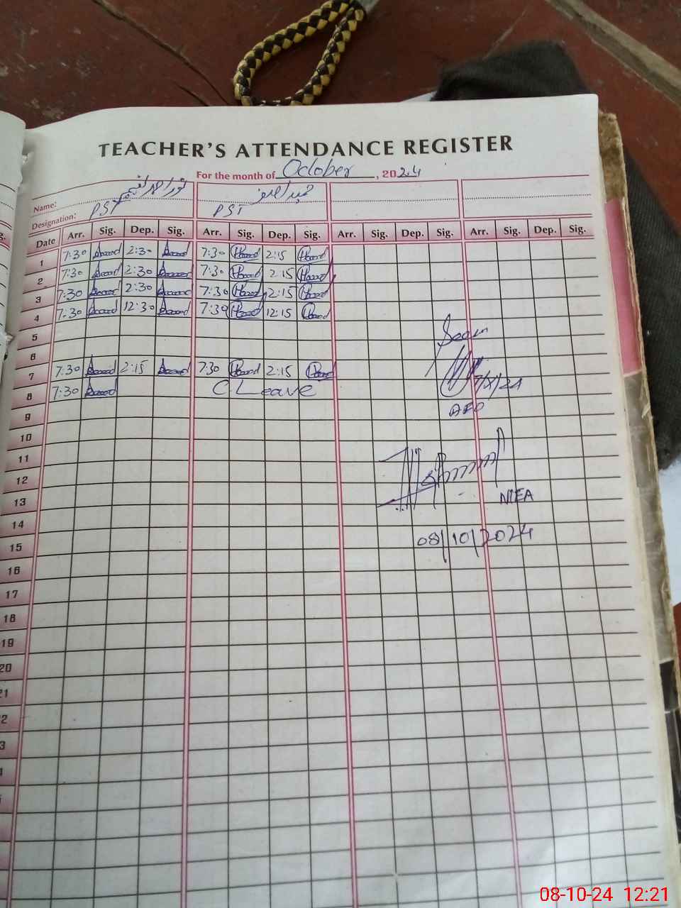 | Name: No**** Ah**** Na**** Designation: (School Headmaster's/Headmistress's) PST Phone/Cell Number: 03**** |