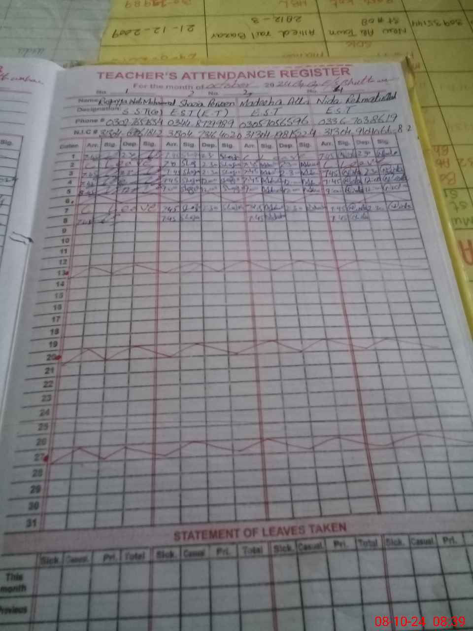 | Name: Sh**** Pe**** Designation: (School Headmaster's/Headmistress's) EST Phone/Cell Number: 03**** |