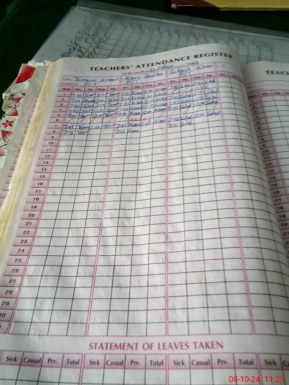 | Leave | Duty | Absent | Maternity | Medical | Ex- Pak |