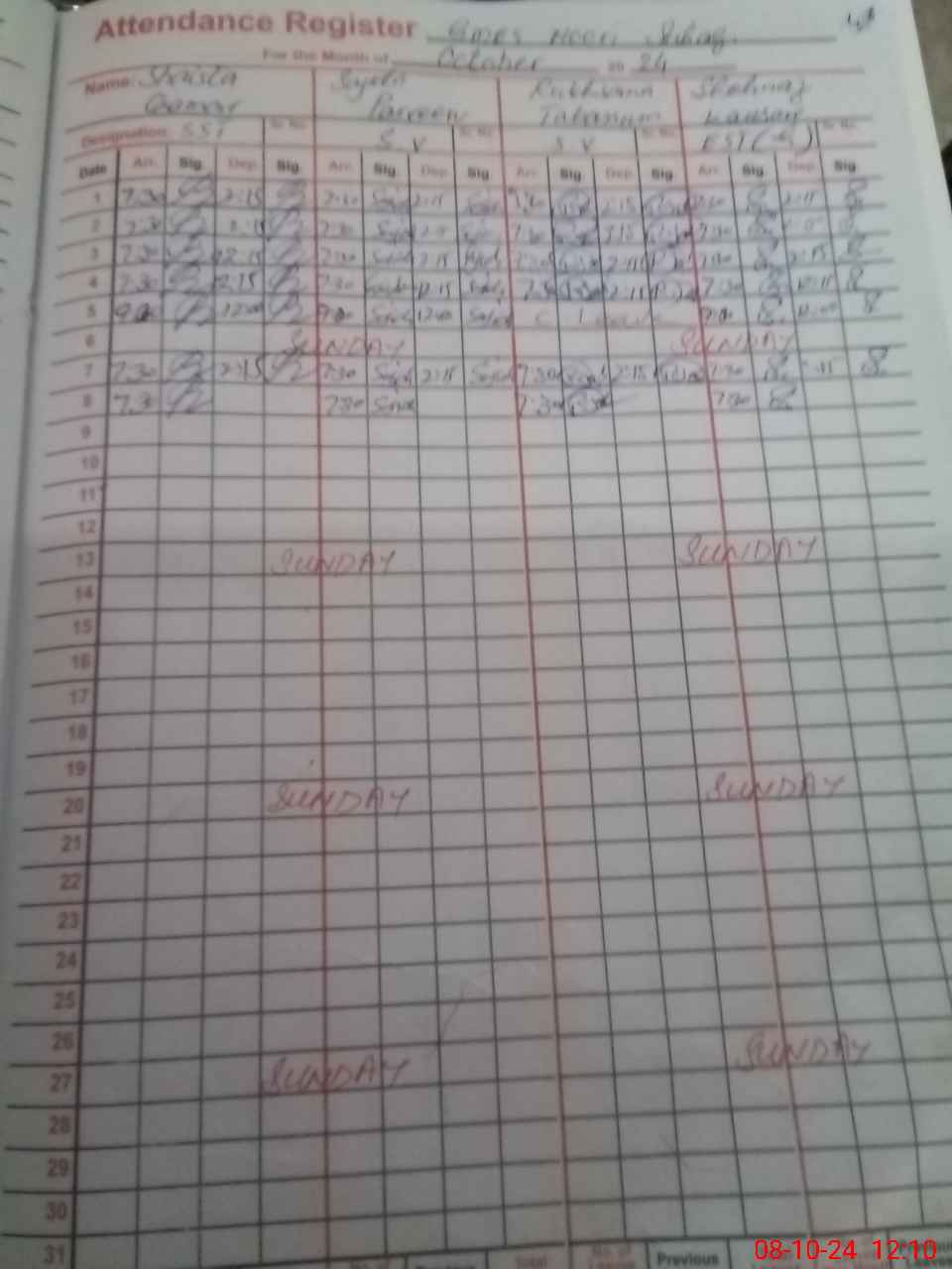 | 36**** | Na**** Ja**** | Regular | 4 | 0 | 0 | 0 | 0 | 0 | 0 | 0 | 4 | Casual | |
