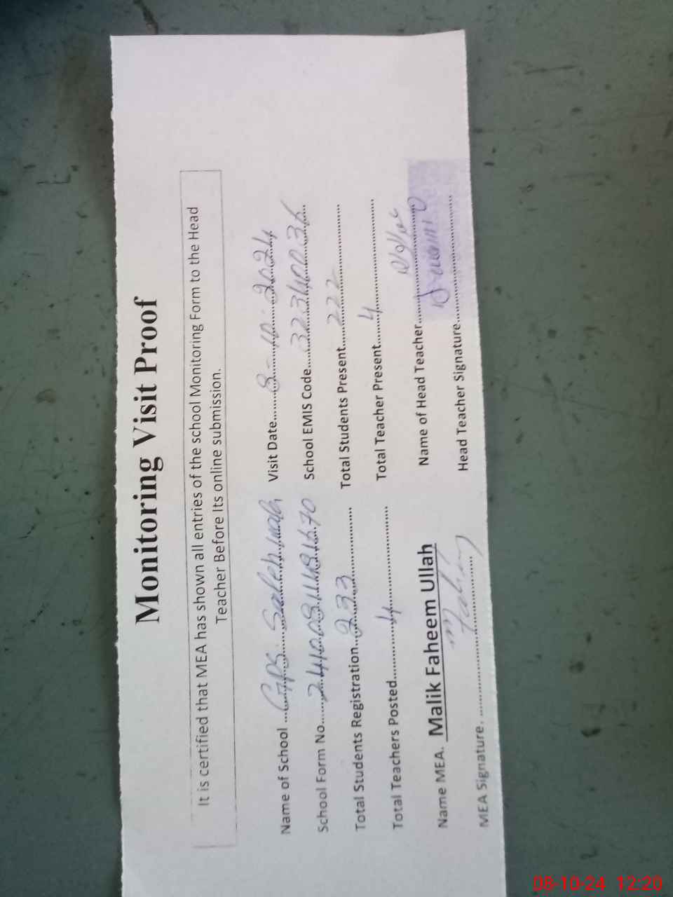 | EMIS Code: 32340036 | Name of School: GPS SALEH WALA | |||