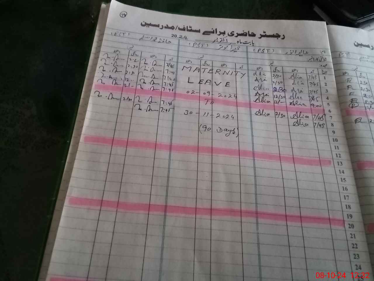 | Leave | Duty | Absent | Maternity | Medical | Ex- Pak |