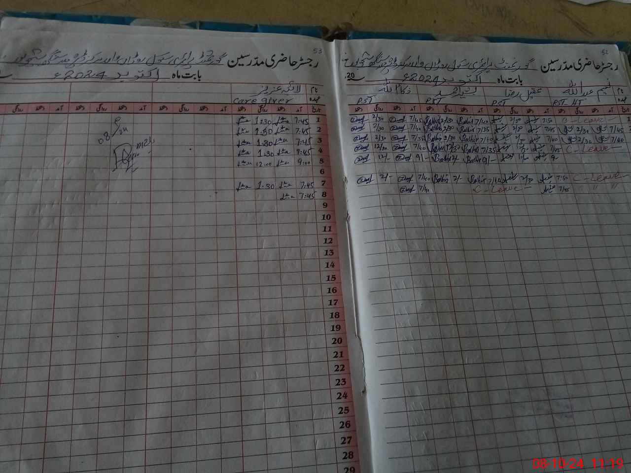 | CNIC | Full Name | Designation | R/C | Absence During Last Calender Month |
