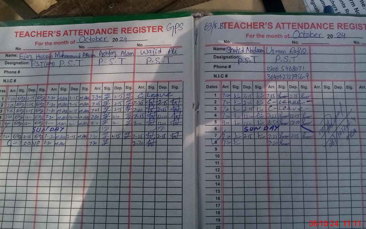 | Name: SH**** NA**** Designation: (School Headmaster's/Headmistress's) PST Phone/Cell Number: 03**** |