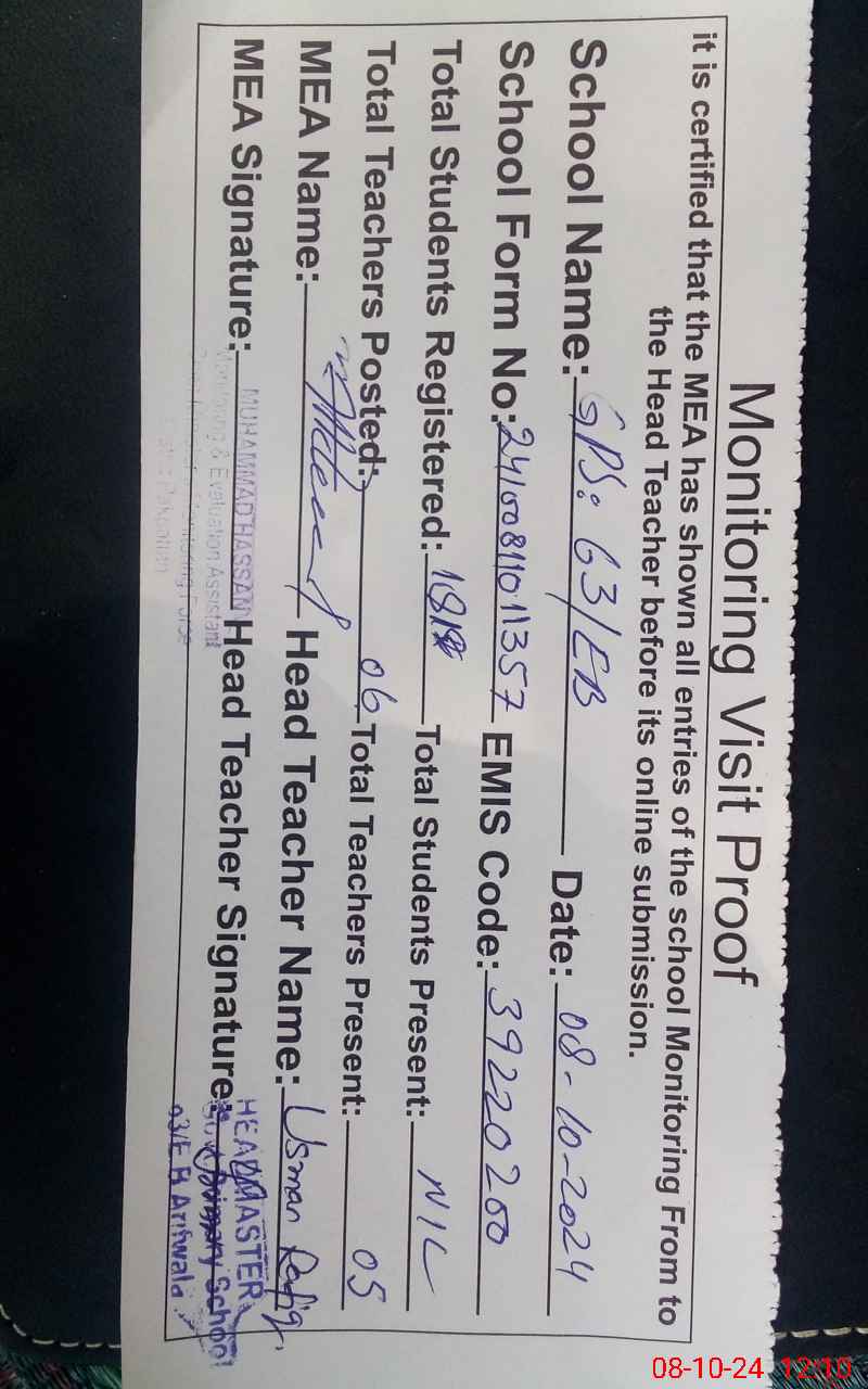 | EMIS Code: 39220200 | Name of School: GPS 63 EB | |||