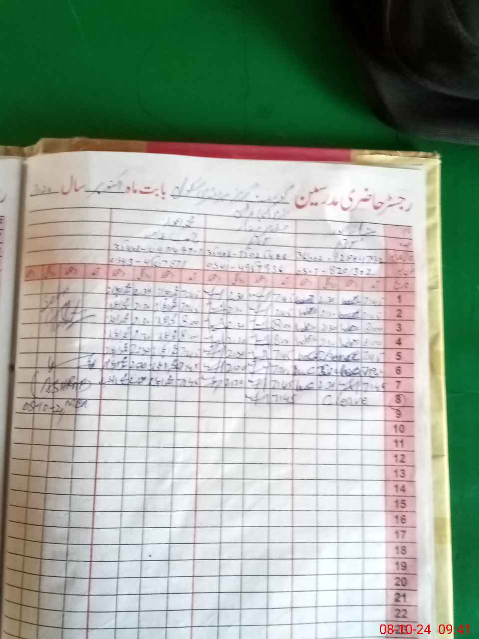 | CNIC | Full Name | Designation | R/C | Absence During Last Calender Month |