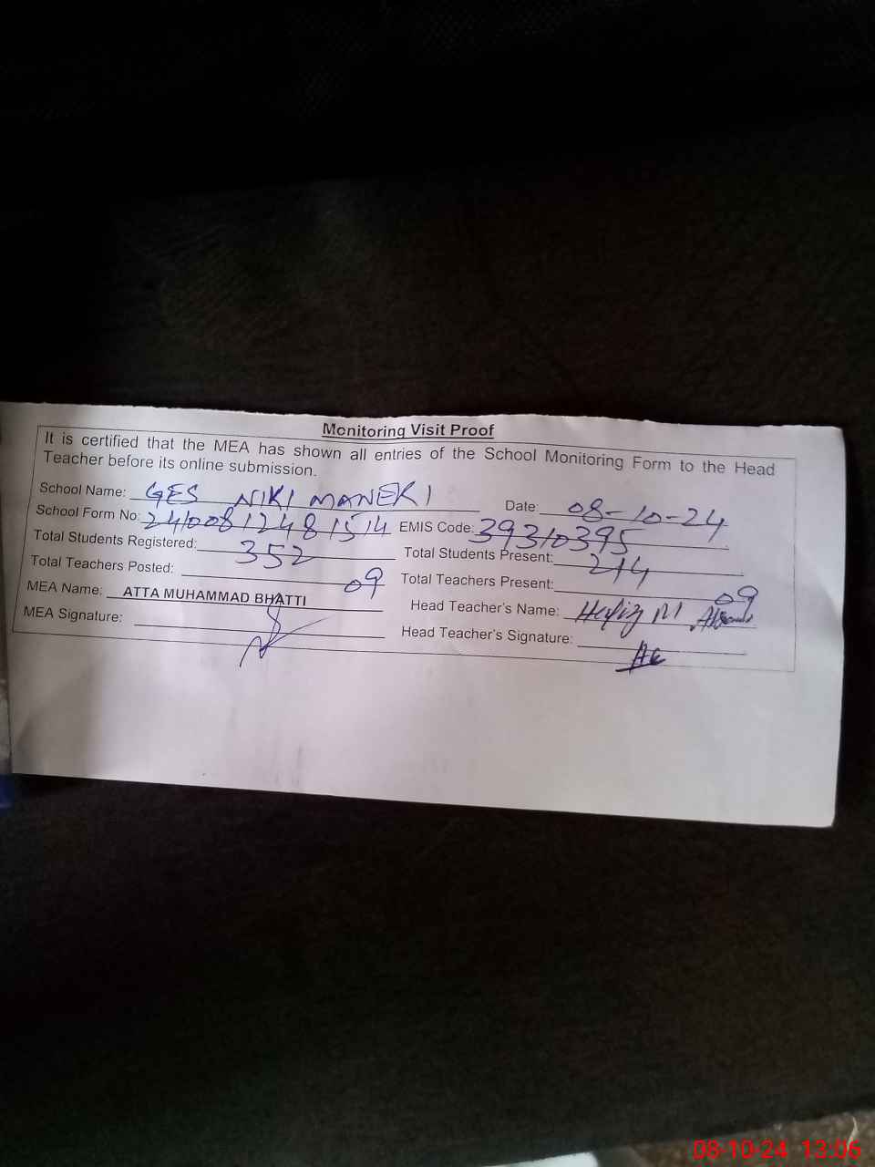 | EMIS Code: 39310395 | Name of School: GES NIKI MANEKI | |||