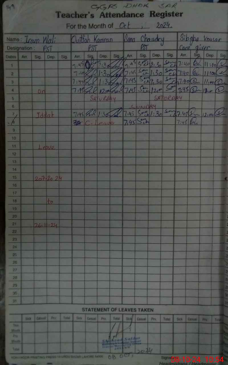 | Name: Ir**** Ha**** Designation: (School Headmaster's/Headmistress's) Headmistress Phone/Cell Number: 03**** |