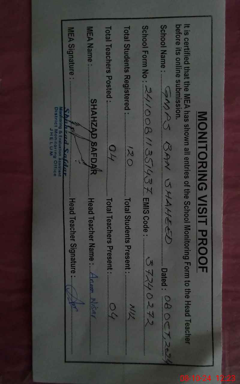 | EMIS Code: 37240272 | Name of School: GMPS BAN SHAHEED | |||