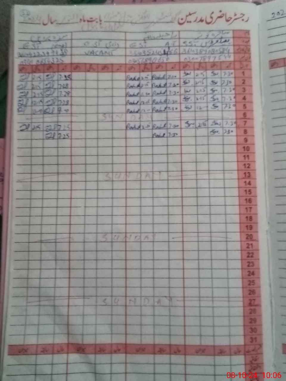 | Name: SA**** KA**** Designation: (School Headmaster's/Headmistress's) S.S.T.(general) Phone/Cell Number: 03**** |