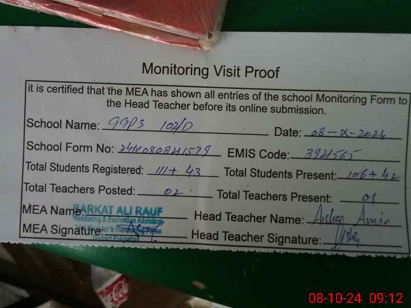 | EMIS Code: 39210565 | Name of School: GGPS 102/D | |||