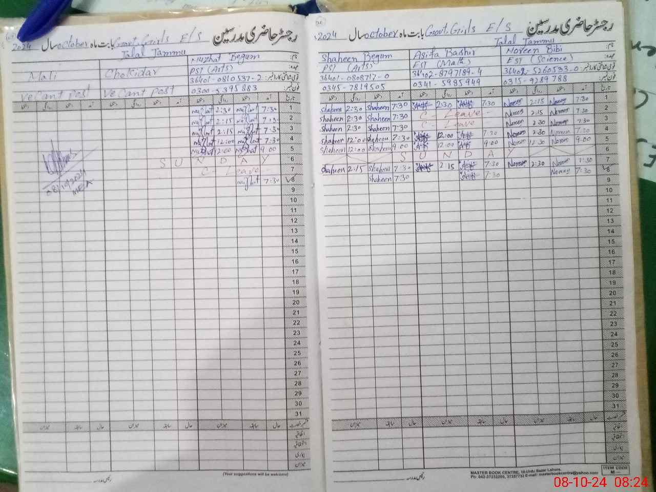 | CNIC | Full Name | Designation | R/C | Absence During Last Calender Month |